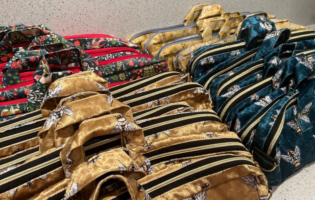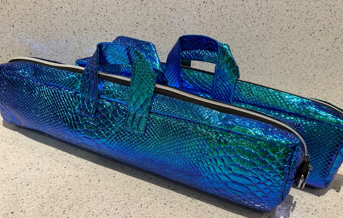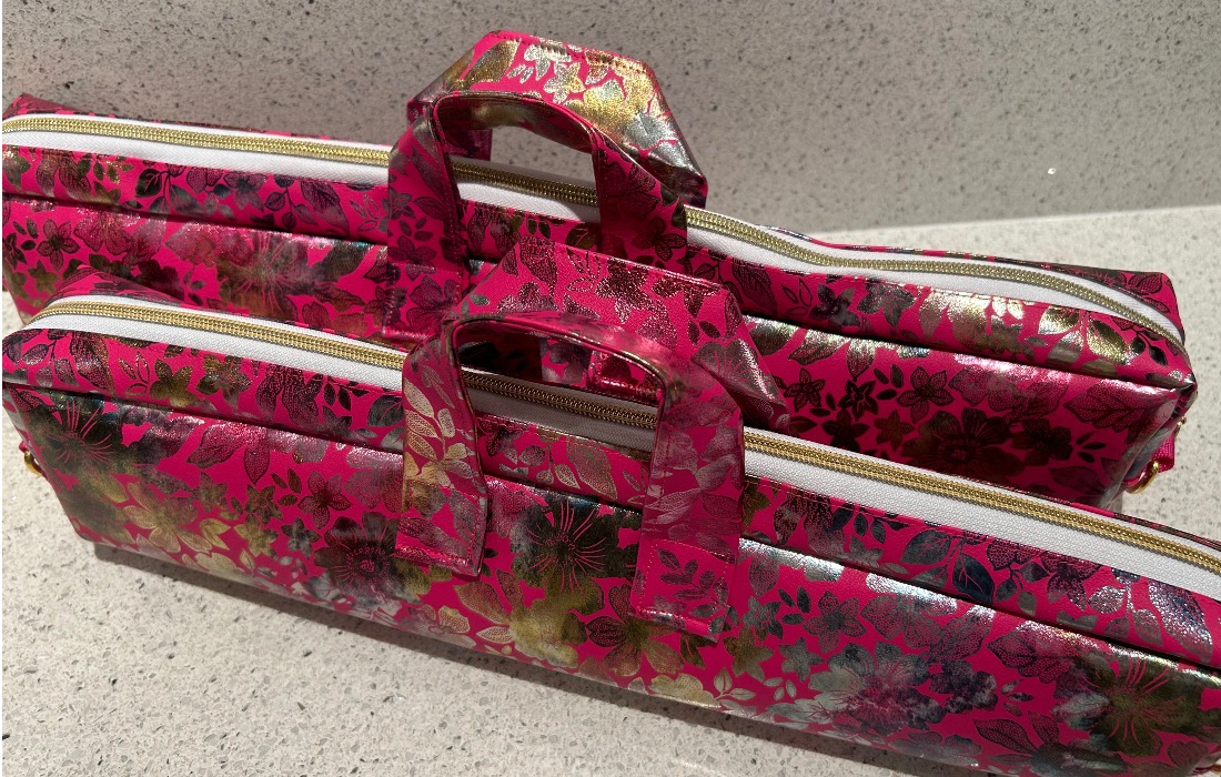 All cases are Sherpa fur lined, have carry handles and come with an adjustable shoulder strap. Luxe fabrics also have a metallic zipper and pull as standard.